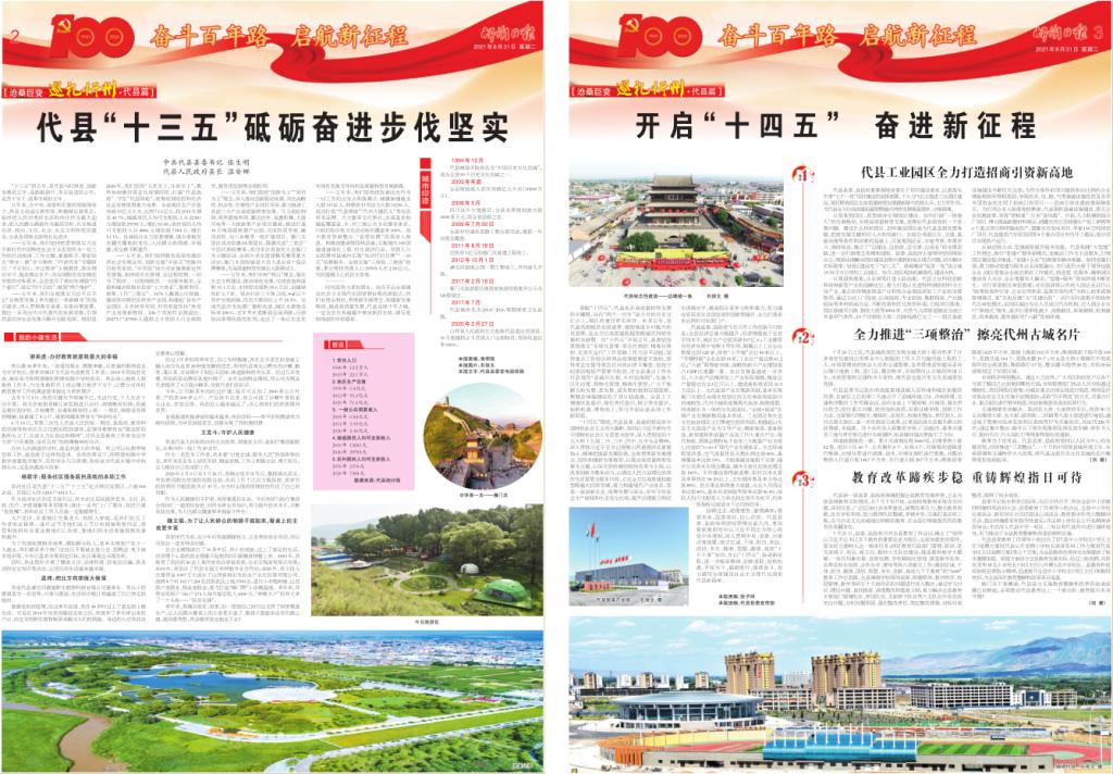 “十三五”的五年,是代縣與時(shí)俱進(jìn)、創(chuàng)新發(fā)展的五年,是砥礪前行、務(wù)實(shí)奮進(jìn)的五年,是苦干實(shí)干、成果豐碩的五年。