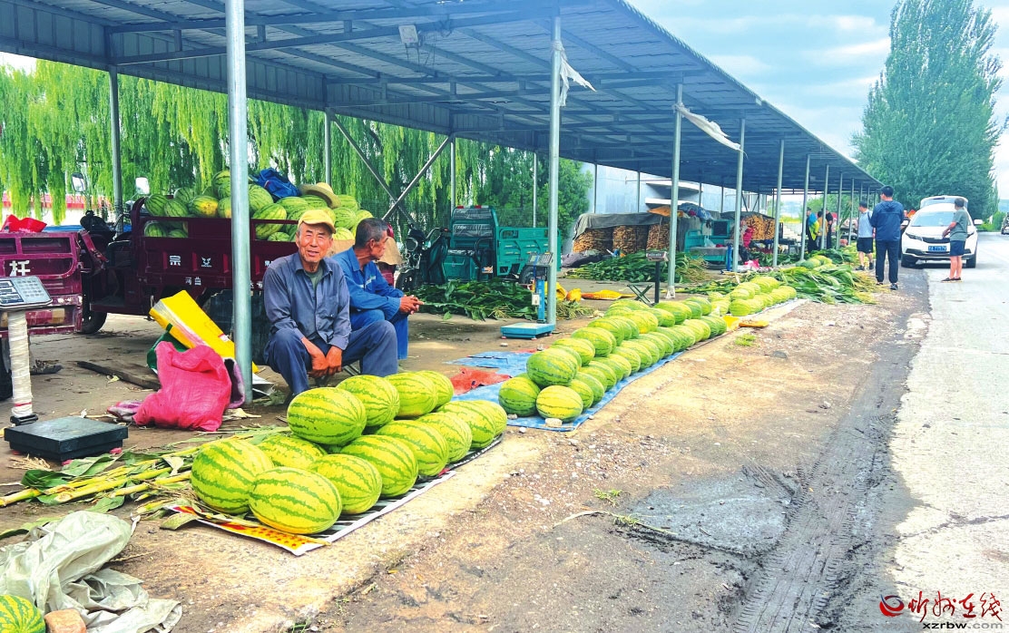 市場(chǎng)有回響,品質(zhì)過(guò)硬銷路旺。在村里的瓜果交易市場(chǎng),75歲的鄔培林?jǐn)偽磺埃慌排艂€(gè)頭飽滿的西瓜格外顯眼。有著多年種植經(jīng)驗(yàn)的他對(duì)市場(chǎng)行情了如指掌:“西瓜上市半個(gè)多月了,剛開(kāi)始賣(mài)兩元一斤,現(xiàn)在是6角一斤,正在陸續(xù)降價(jià)?!彪m然價(jià)格隨上市時(shí)間有所回落,但西瓜品質(zhì)好不愁銷路。