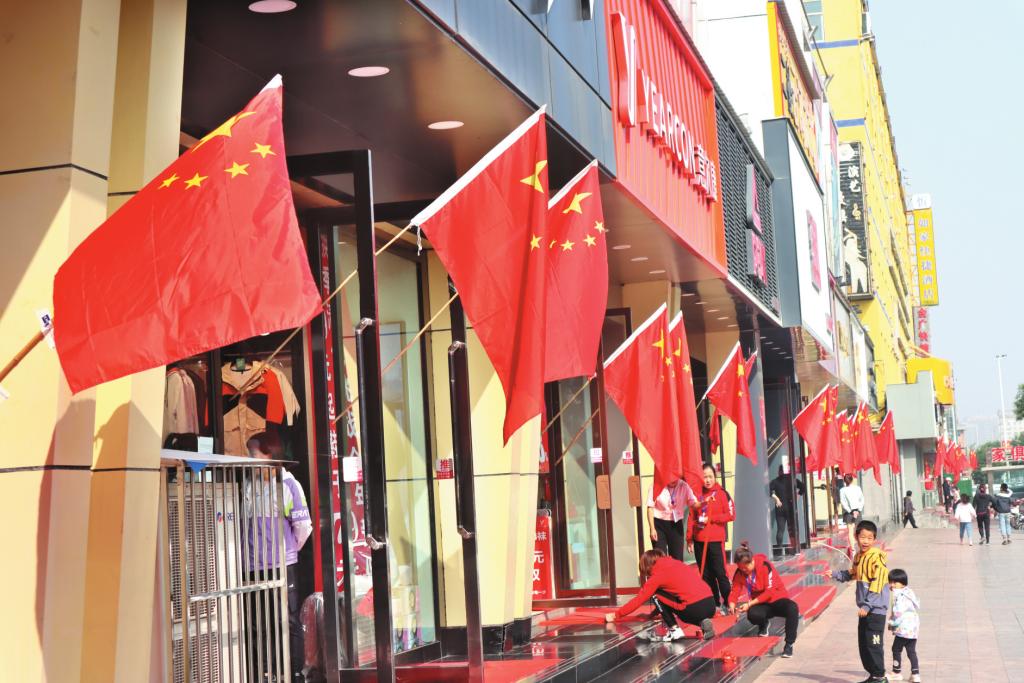 國慶假日期間,忻州城區(qū)道路兩側(cè)、商戶門前、小區(qū)內(nèi)外相繼懸掛起鮮艷的五星紅旗,既扮靚了城市的街頭巷尾,烘托出喜慶的節(jié)日氣氛,更激發(fā)了廣大市民愛黨愛國情懷。 (記者 張志遠(yuǎn)攝)