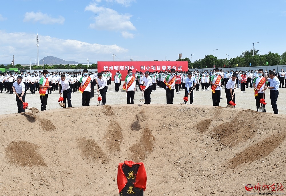 市領(lǐng)導(dǎo)為忻州師院附中、附小校區(qū)建設(shè)項(xiàng)目培土奠基。馮曉磊 攝
