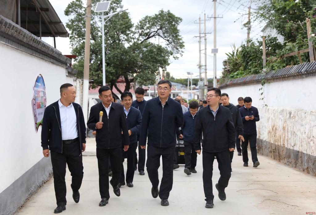 在河曲縣舊縣鎮(zhèn)舊縣村觀摩檢查“千萬工程精品示范村”項目整治情況。范濤 攝