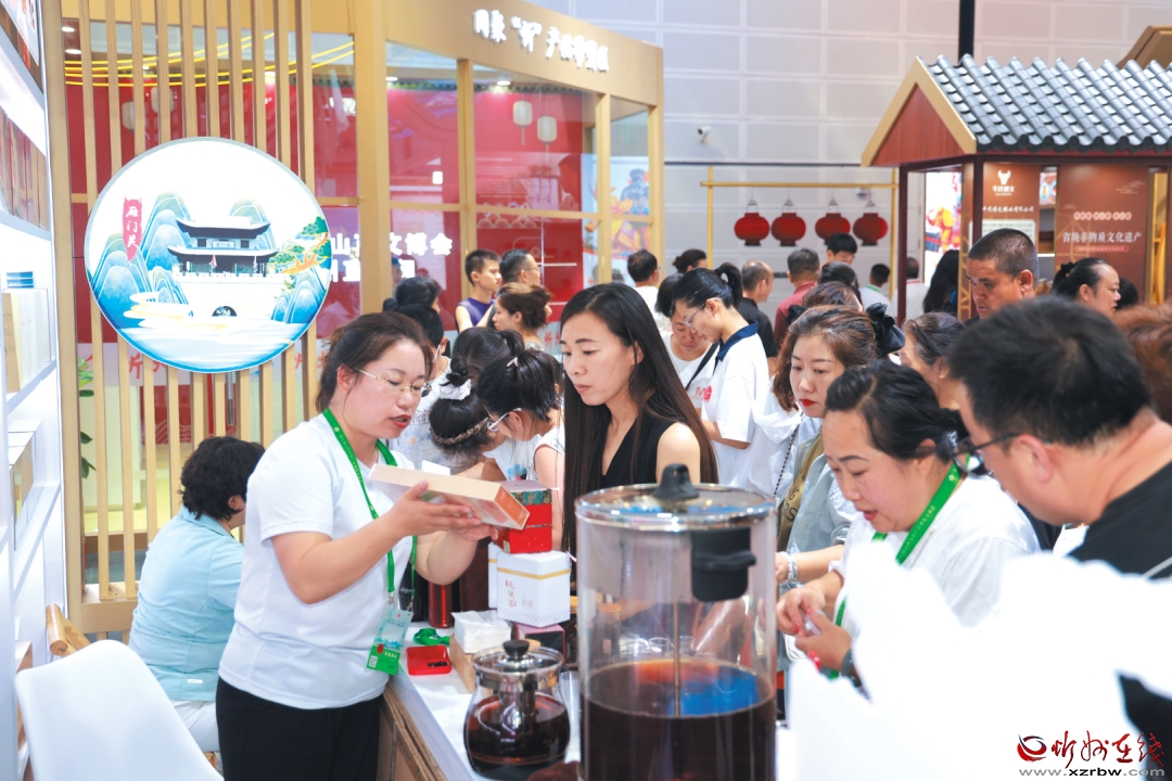 觀眾在第七屆山西文博會(huì)忻州展廳購(gòu)買(mǎi)特優(yōu)農(nóng)產(chǎn)品。張存良攝