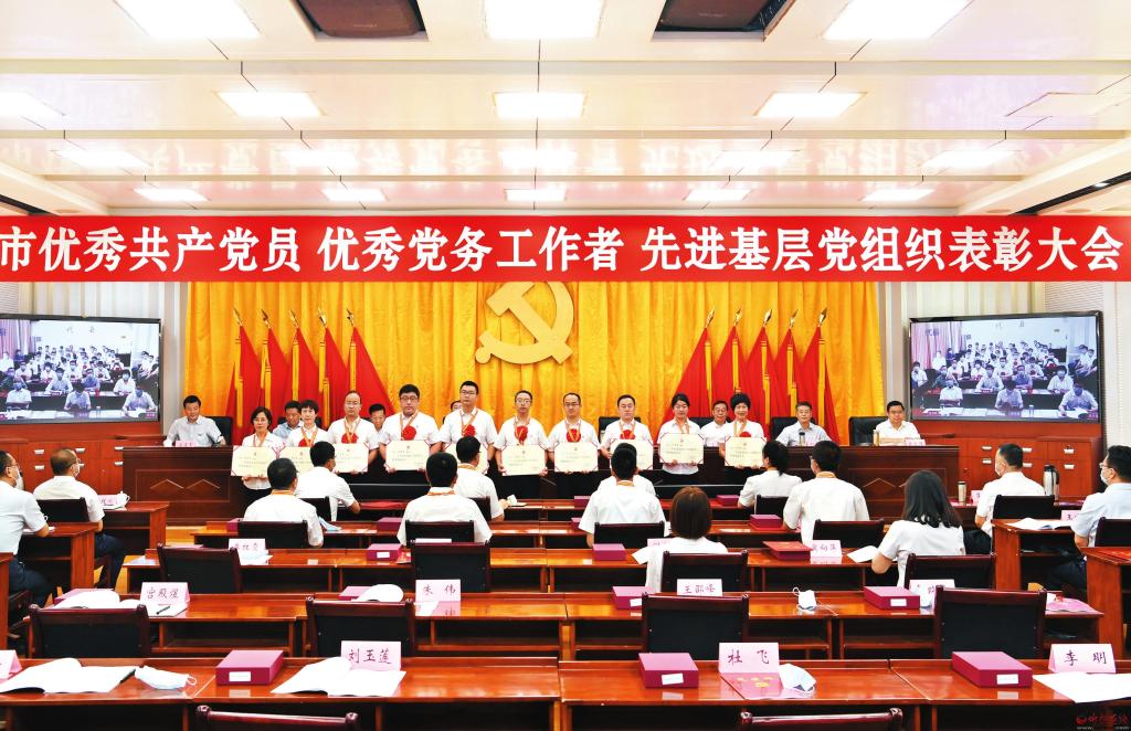 不忘初心,牢記使命,爭先創(chuàng)優(yōu)。在全市“兩優(yōu)一先”表彰大會上,受表彰的全市優(yōu)秀共產(chǎn)黨員上臺領(lǐng)獎。 劉紀(jì)森攝