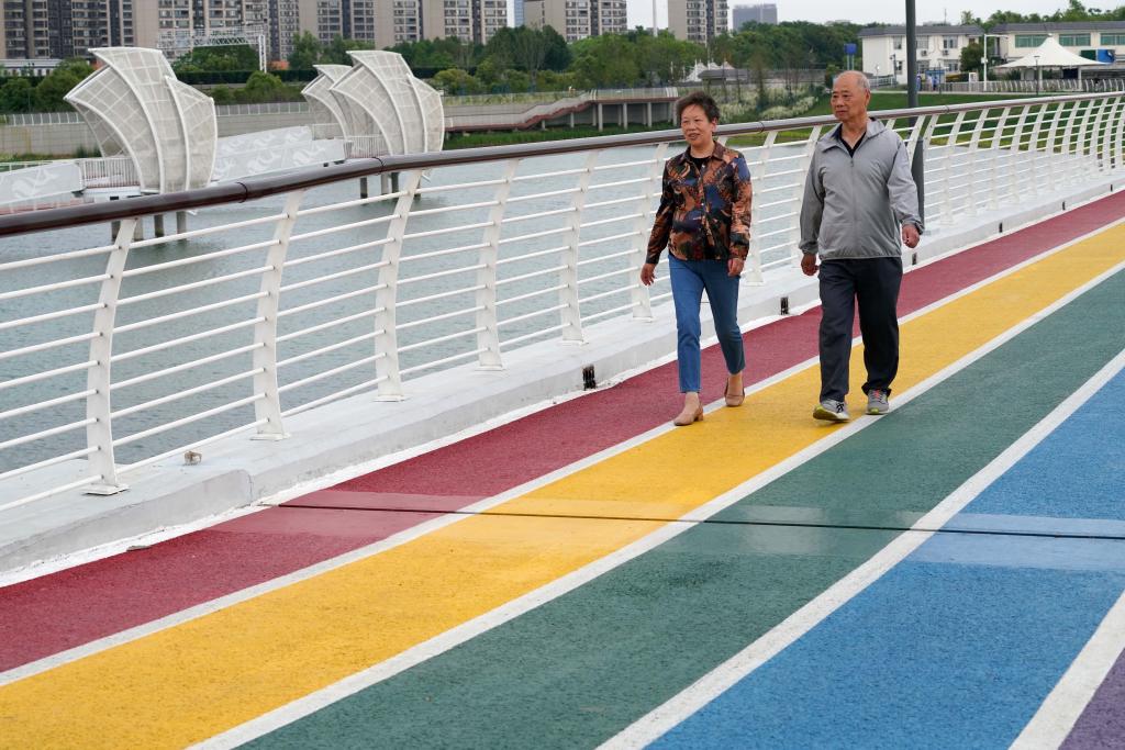 5月17日,市民在小溪港漁咀公園散步休閑(無人機(jī)照片)。新華社記者馬寧 攝 小溪港位于無錫經(jīng)濟(jì)開發(fā)區(qū)南部,緊臨太湖。曾經(jīng),這里是遠(yuǎn)近聞名的湖邊魚市,漁民們?cè)诖藬[攤販魚產(chǎn)生的遍地垃圾不僅污染了生態(tài)環(huán)境,也給市民生活帶來揮之難去的煩惱。 “一到夏天,這里就會(huì)散發(fā)濃濃的腥臭味,遇到下雨天,更是滿地泥污走不動(dòng)路?!蔽捍鬆敾貞浾f?,F(xiàn)如今,魚市碼頭不見了,取而代之的是一座現(xiàn)代化的濕地生態(tài)公園。置身小溪港漁咀公園,遠(yuǎn)方太湖萬頃碧波,近處樹影花香、鳥鳴啾啾,一派江南好風(fēng)景。 臟亂腥臭的魚市碼頭,變身為市民休閑、觀光的“愉生活”主題公園,這背后究竟發(fā)生了什么?
