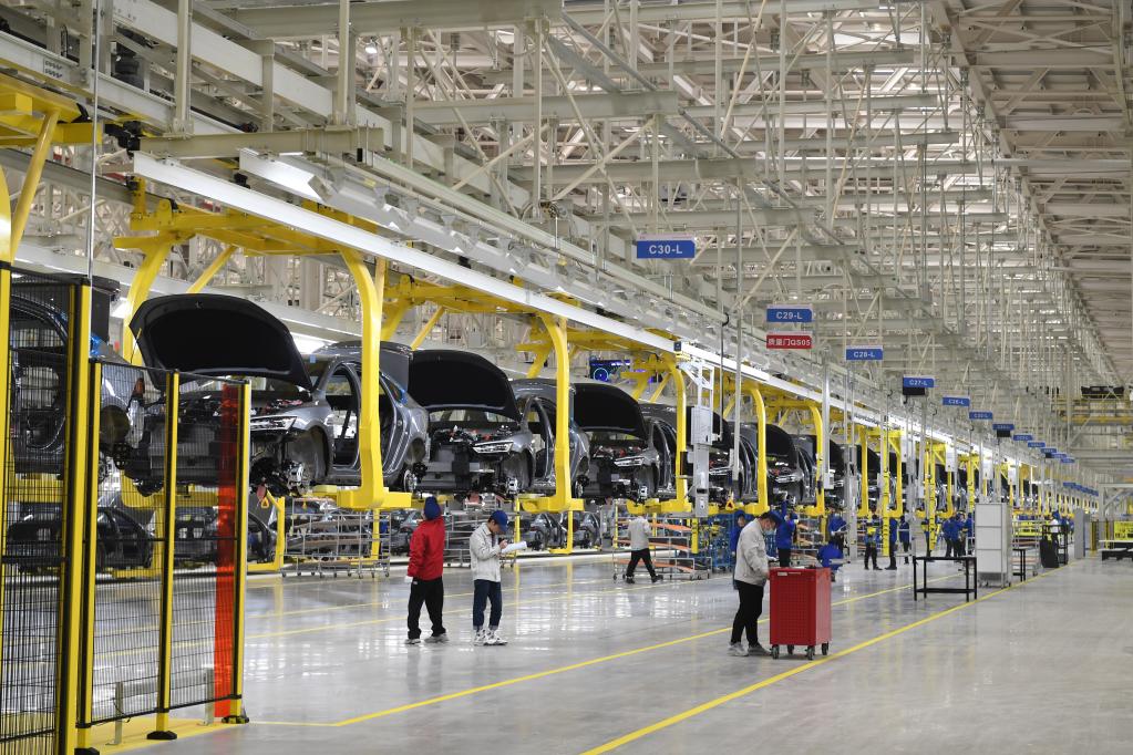 在合肥經(jīng)濟技術開發(fā)區(qū)的一家新能源汽車生產企業(yè),工人在整車生產線上作業(yè)。新華社發(fā)(解琛攝)