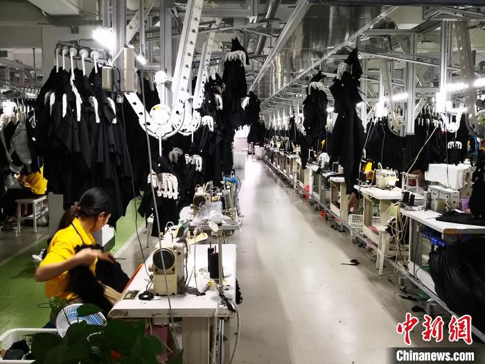 6月17日,卡賓服飾工廠內工作人員在制作服裝。 中新社記者 劉亮 攝
