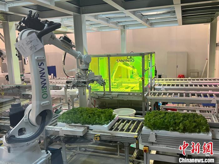 圖為2023年6月16日中科三安LED植物工廠內部。 中新社記者 魏晞 攝