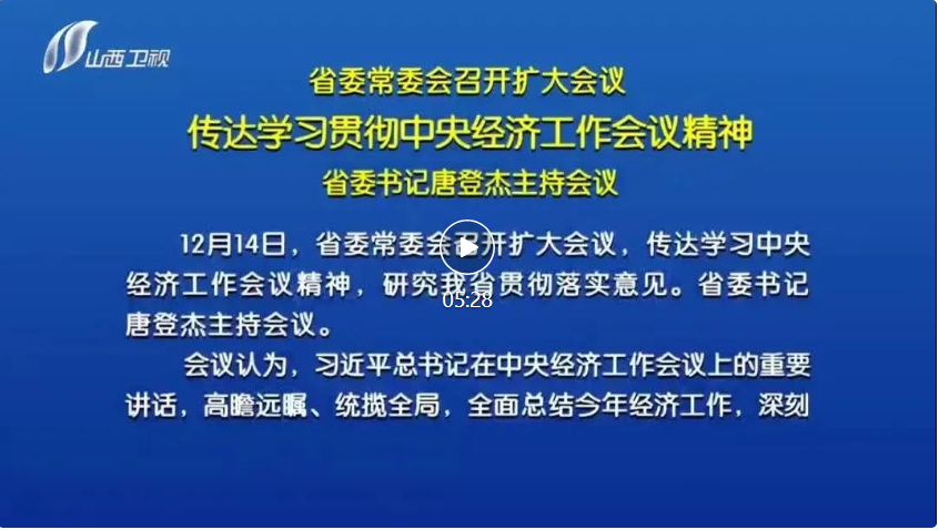 山西日報報道 12月14日,省委常委會召開擴(kuò)大會議,傳達(dá)學(xué)習(xí)中央經(jīng)濟(jì)工作會議精神,研究我省貫徹落實(shí)意見。省委書記唐登杰主持會議。