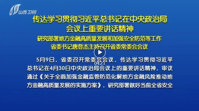山西日報報道 5月9日,省委召開常委會會議,傳達(dá)學(xué)習(xí)貫徹習(xí)近平總書記在4月30日中央政治局會議上的重要講話精神,審議通過《關(guān)于全面加強金融監(jiān)管防范化解地方金融風(fēng)險推動地方金融高質(zhì)量發(fā)展的實施方案》,研究部署做好當(dāng)前全省安全防范工作。省委書記唐登杰主持會議。