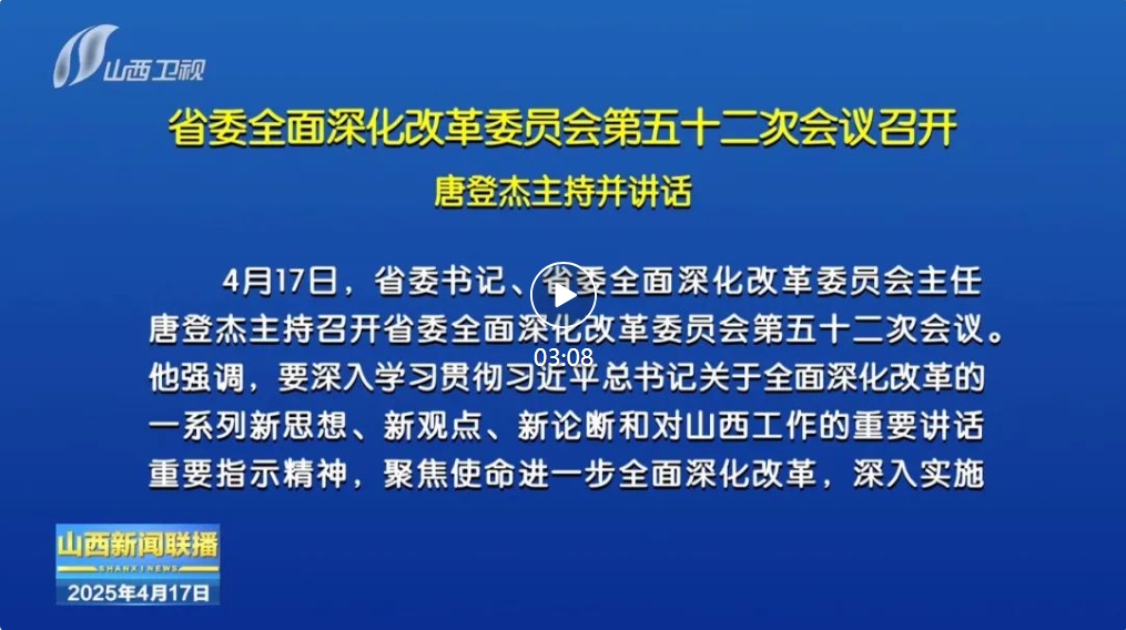 4月17日,省委書記、省委全面深化改革委員會主任唐登杰主持召開省委全面深化改革委員會第五十二次會議。他強調(diào),要深入學(xué)習(xí)貫徹習(xí)近平總書記關(guān)于全面深化改革的一系列新思想、新觀點、新論斷和對山西工作的重要講話重要指示精神,聚焦使命進一步全面深化改革,深入實施改革攻堅行動,突出抓落實的鮮明導(dǎo)向,凝心聚力、實干篤行,不折不扣推進黨中央決策部署及省委工作安排落地見效,為中國式現(xiàn)代化山西實踐提供強勁動力。