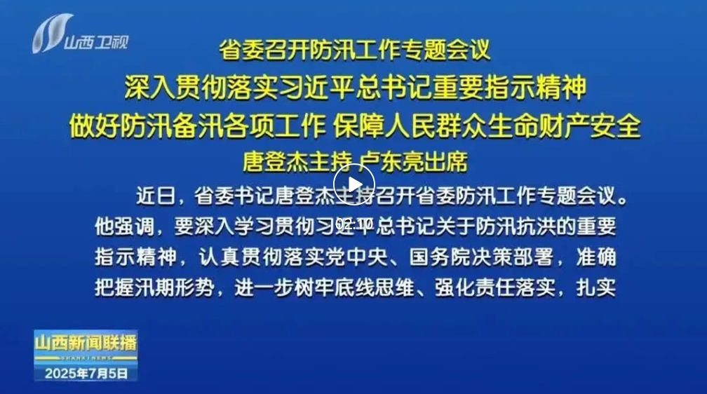 近日,省委書記唐登杰主持召開省委防汛工作專題會議。他強(qiáng)調(diào),要深入學(xué)習(xí)貫徹習(xí)近平總書記關(guān)于防汛抗洪的重要指示精神,認(rèn)真貫徹落實(shí)黨中央、國務(wù)院決策部署,準(zhǔn)確把握汛期形勢,進(jìn)一步樹牢底線思維、強(qiáng)化責(zé)任落實(shí),扎實(shí)做好防汛備汛各項(xiàng)工作,堅(jiān)決打好防汛救災(zāi)主動(dòng)仗,全力保障人民群眾生命財(cái)產(chǎn)安全。省委副書記、省長盧東亮,省領(lǐng)導(dǎo)李金科、楊勤榮、張韶華出席。