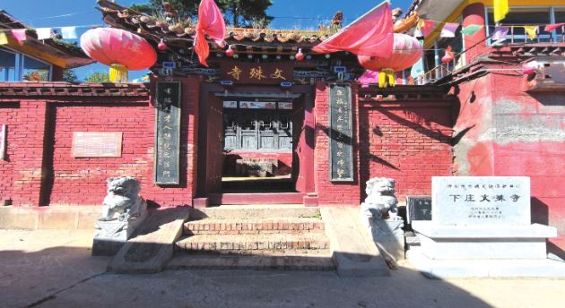 下莊文殊寺位于五臺縣東雷鄉(xiāng)下莊村中,始創(chuàng)年代不詳,現(xiàn)存建筑為明代所建。寺廟坐北向南,占地面積368平方米。山門一間,中置板門。正殿面寬三間、進深五椽,前出廊(此走廊屬清代遺構,為后期加接),廊柱施斗拱,大斗口內出跳,兩側帶有雕花翼拱。檐柱頭斗拱為五踩,其下昂已被鋸掉(現(xiàn)存昂嘴為清代更換的如意昂式);平身科斗拱亦為五踩。當心間設門,兩次間設直欞窗。