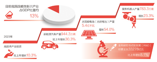 發(fā)展壯大戰(zhàn)略性新興產(chǎn)業(yè)?!皯?zhàn)略性新興產(chǎn)業(yè)具有創(chuàng)新活躍、技術(shù)密集等特點(diǎn),為新質(zhì)生產(chǎn)力發(fā)展壯大提供了巨大空間。”高文代表說,近年來,我國戰(zhàn)略性新興產(chǎn)業(yè)蓬勃發(fā)展,目前戰(zhàn)略性新興產(chǎn)業(yè)占GDP比重約13%。