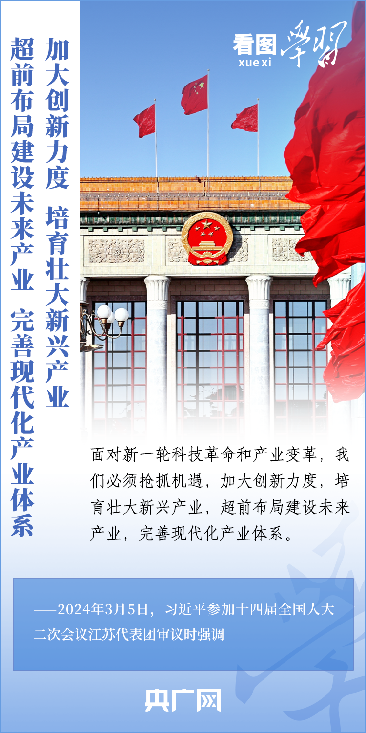 3月5日,十四屆全國人大二次會議正式開幕。5日下午,習近平總書記參加他所在的江蘇代表團審議時強調,要牢牢把握高質量發(fā)展這個首要任務,因地制宜發(fā)展新質生產力。發(fā)展新質生產力不是忽視、放棄傳統(tǒng)產業(yè),要防止一哄而上、泡沫化,也不要搞一種模式。一起來學習!
