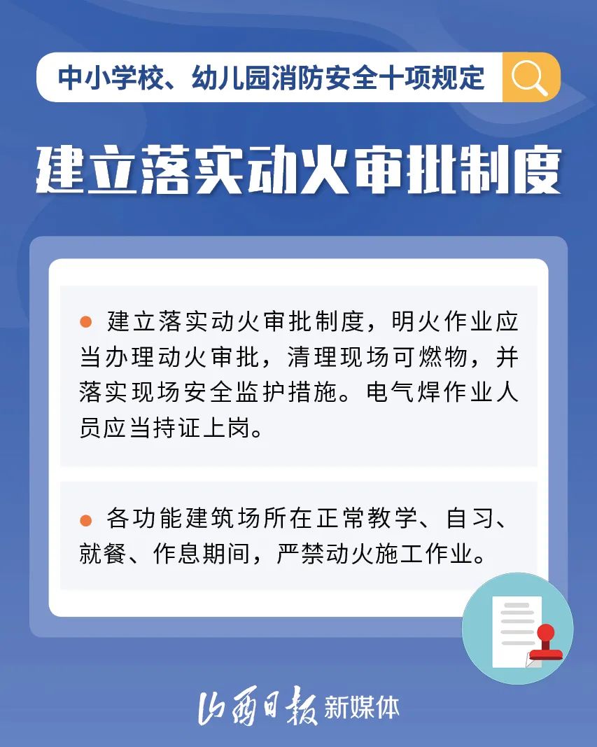 為加強中小學校、幼兒園消防安全管理,近日,教育部、國家消防救援局研究制定了《中小學校、幼兒園消防安全十項規(guī)定》,具體規(guī)定內(nèi)容如下。