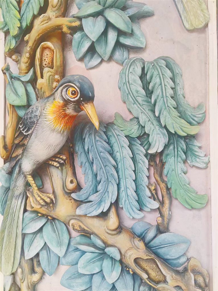 在海南的灰塑作品中,留白的運(yùn)用同樣有“以無(wú)勝有”的視覺(jué)效果?!盎宜茏髌飞饰宀拾邤?,一眼看過(guò)去容易產(chǎn)生錯(cuò)亂的感覺(jué),這時(shí)候留白就顯得很重要?!卞竞iw酒店負(fù)責(zé)人符燕舞說(shuō),灰塑作品有明顯的寫(xiě)實(shí)風(fēng)格,所呈現(xiàn)的物象紛繁多彩。如果要將灰塑作為一種藝術(shù)品保留下來(lái),用留白的手法為作品增添美感十分必要。