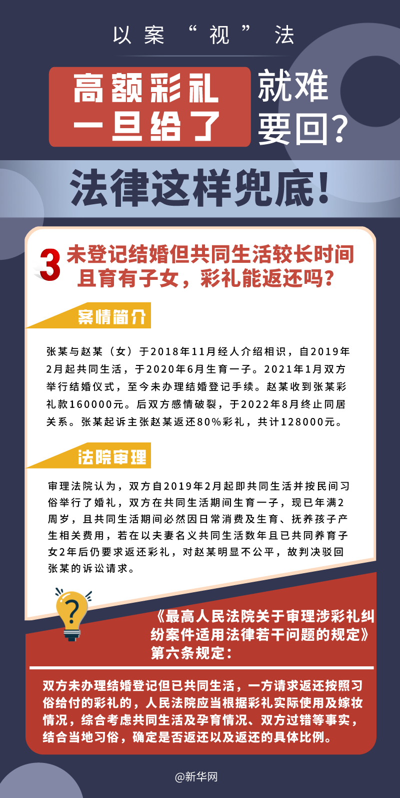 “五一”長假期間,各地迎來了婚禮高峰期,“彩禮”話題,尤其農(nóng)村高額彩禮現(xiàn)象備受關(guān)注。破解高價(jià)彩禮,在解決爭議的層面,司法盡了最大努力兜底。本期《以案“視”法》針對涉“高額彩禮”糾紛,帶大家學(xué)習(xí)相關(guān)法律知識。