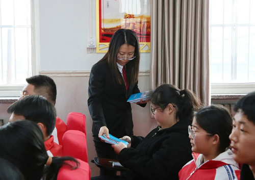 “我宣誓:忠于中華人民共和國(guó)憲法,維護(hù)憲法權(quán)威,履行法定職責(zé),忠于祖國(guó)、忠于人民……”授課結(jié)束后,全場(chǎng)人員緊握右拳,莊嚴(yán)宣誓,字字千鈞、擲地有聲的鏗鏘誓言在會(huì)場(chǎng)久久回蕩,充分表達(dá)了大家對(duì)憲法的信仰、尊崇與敬畏。隨后,法院干警向?qū)W生們發(fā)放了中院精心制作的憲法、平安建設(shè)、防范校園欺凌、未成年人保護(hù)、預(yù)防未成年人犯罪等法律知識(shí)宣傳手冊(cè)。