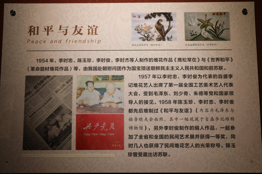 然而,歷史的波瀾并未停止。中華人民共和國(guó)成立后,堆花藝術(shù)經(jīng)歷了從繁榮到衰落,再到復(fù)興的曲折歷程。在黨和政府的關(guān)懷下,老一輩堆花藝人積極響應(yīng)號(hào)召,成立堆花小組,將堆花藝術(shù)服務(wù)于國(guó)家建設(shè)和人民生活??姑涝陂g,堆花作品作為國(guó)寶贈(zèng)予朝鮮,見(jiàn)證了中朝兩國(guó)人民的深厚友誼。