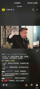 從山西古代壁畫隱藏的密碼、傳統(tǒng)壁畫艷麗制作工藝的挖掘研究,現(xiàn)場觀眾聽得津津有味、頻頻點(diǎn)頭,直播間網(wǎng)友更是踴躍留言、頻繁互動(dòng),網(wǎng)友@寸草三心留言:“非常好的講座,學(xué)習(xí)到很多歷史知識”;還有網(wǎng)友留言探討山西古代壁畫的重要價(jià)值。直播收尾前,如何更好地保護(hù)山西低等級壁畫?介子平老師表示,文物不分“高低”,每個(gè)人審美不一樣,無論是低等級別還是其他級別,山西古代壁畫都值得大家去保護(hù)、去珍藏、去解讀;史宏蕾教授也呼吁,大家一定要關(guān)注那些散落在鄉(xiāng)間田野里的低等級壁畫,低等級壁畫中也有極其重要的價(jià)值。