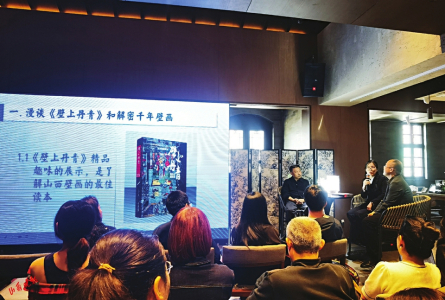 這場講座備受文博迷們關(guān)注,預(yù)告一經(jīng)發(fā)布,便達(dá)到報(bào)名滿額的狀態(tài)。當(dāng)日,現(xiàn)場更是座無虛席,不乏默默站著聆聽的觀眾。專家們帶領(lǐng)大家穿越千年時(shí)光,從漢魏墓室壁畫開始,將壁畫的線條、配色、技術(shù)、布局等一一揭曉。史宏蕾教授從平陸縣棗園漢墓壁畫、大同沙嶺墓、太原婁睿墓講起,壁畫上的鑿井青龍、白虎和玄武形象、還原農(nóng)業(yè)生產(chǎn)景象的牛耕壁畫、一對墓主人夫婦的畫作以及宰羊圖……這些畫作線條優(yōu)美、故事豐富、將當(dāng)時(shí)的生活狀態(tài)表現(xiàn)得活靈活現(xiàn)。史宏蕾教授表示,古代畫匠可以被稱為“巨匠”“藝術(shù)家”,他們的審美、原創(chuàng)力都堪稱為領(lǐng)先,很多時(shí)候她更愿意稱這些畫匠為“丹青專職畫家”。